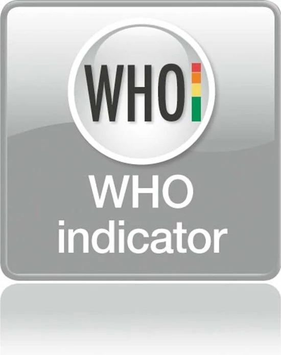 – Risico-indicator: classificatie van metingen met gekleurde schaal (WHO classificatie)