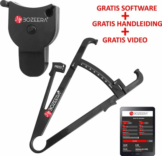 BOZEERA Huidplooimeter en Body Mass Tape – Vetmeter en Meetlint Lichaam – Inclusief Software Video Uitleg en Nederlandse Handleiding