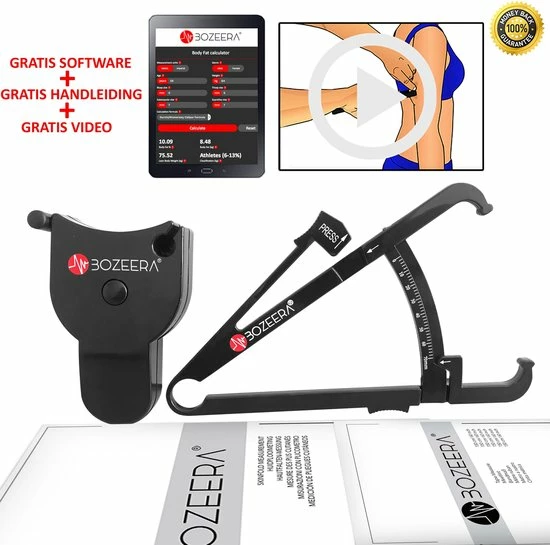 De BOZEERA? HUIDPLOOIMETER EN BODY MASS TAPE. Eenvoudig in gebruik en perfect om inzicht te krijgen in zowel omtrek van lichaamsdelen als je lichaamsvetpercentage.