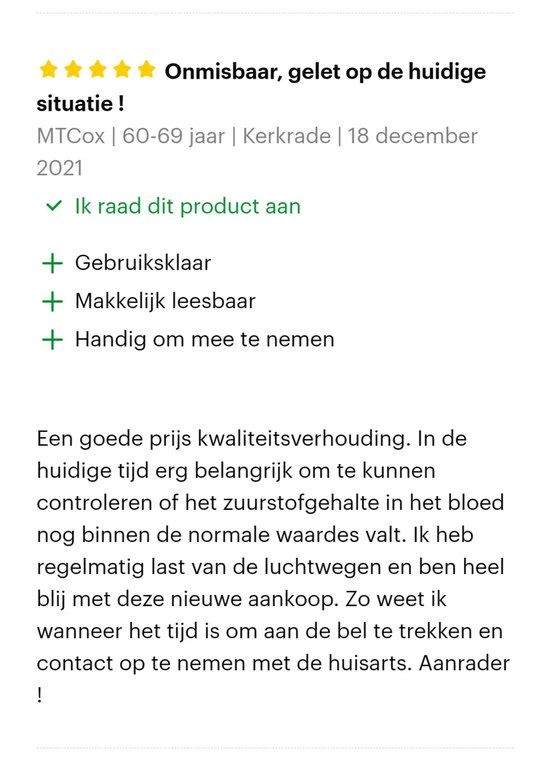 Heeft u een probleem of een opmerking over de saturatiemeter? Aarzel niet om contact op te nemen met bol.com. Wij zullen uw probleem of opmerking verhelpen. Uw feedback kunnen wij goed gebruiken om ons aanbod te verbeteren.