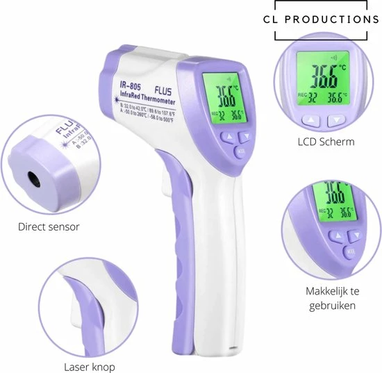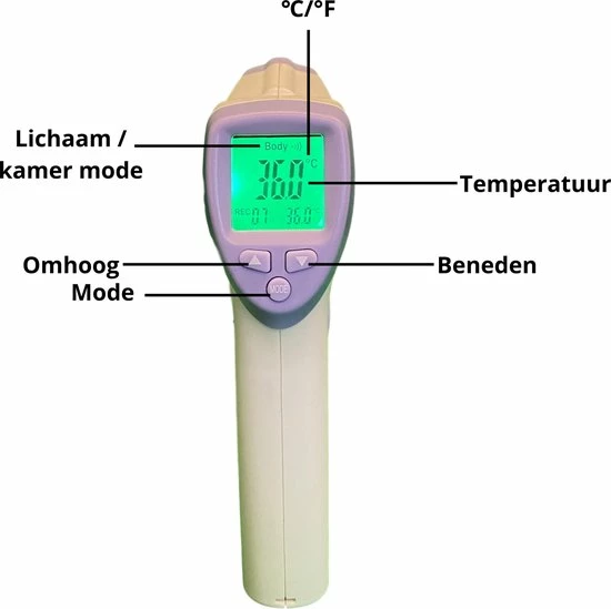 Het kan worden gebruikt om de temperatuur van het voorhoofd, lichaam en objecten te meten en is eenvoudig te bedienen.