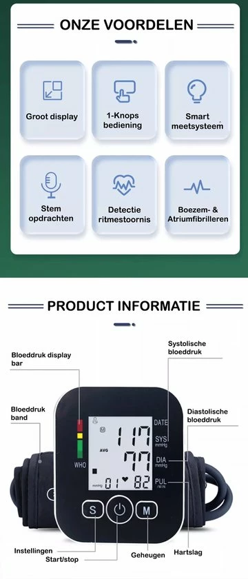 Automatische Bovenarm Bloeddrukmeter voor thuis én onderweg.