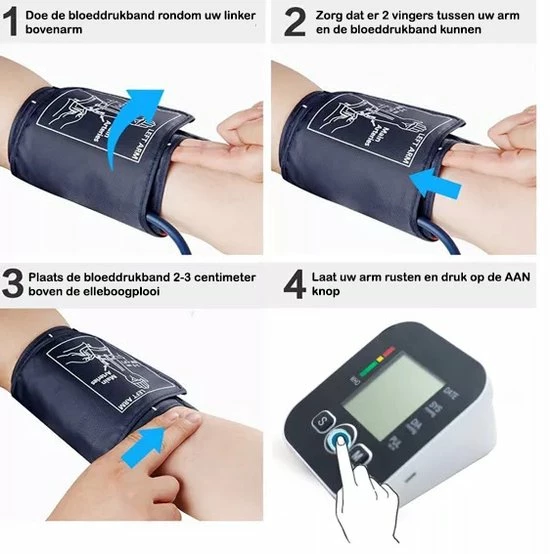 Onze bloeddruk meter is een eenvoudig, draagbaar en nauwkeurig apparaat dat geschikt is voor alle lichaamstypen. De manchet past om een bovenarmomtrek van 22 tot 40 cm – en is zo geschikt voor bijna iedereen. Je bevestigt de manchet rond je bovenarm en start de meting eenvoudig met slechts één druk op de knop.