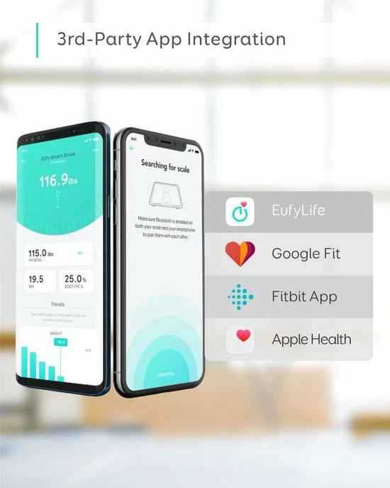 GRATIS EUFYLIFE-APP EN APPS VOOR DERDEN: volg uw metingen op Apple Health, Google Fit en Fitbit.
