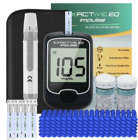 De bloedglucosemeter is eenvoudig in gebruik, waardoor het mogelijk is om zelfstandig u bloedsuiker te meten. Bij de Exactive EQ Impulse glucosemeter is het mogelijk om in alle tijden u bloedglucose te meten. De glucosemeter heeft geen internet verbinding nodig en meteen klaar voor gebruik.