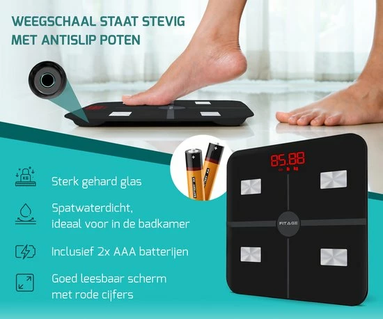 Specificaties FITAGE weegschaal met lichaamsanalyse