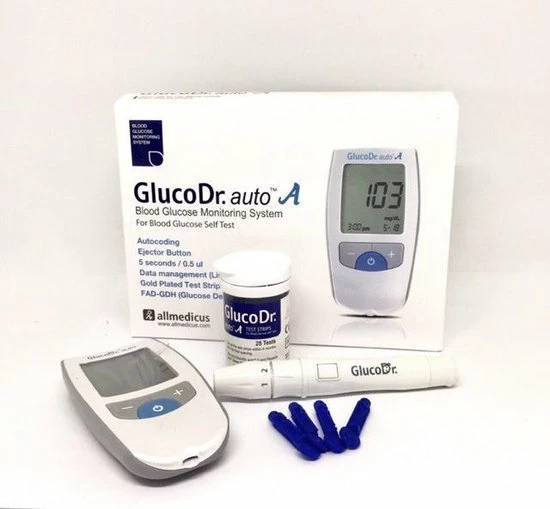 De GlucoDR bloedglucosemeter is een gebruiksvriendelijk en handig apparaat om het bloedglucose mee te meten. De bloedglucosemeter kan tot wel 500 metingen opslaan. De GlucoDR bloedsuikermeter geeft een zeer nauwkeurig resultaat in slechts 5 seconden. De bloedsuikermeter is voorzien van een knop voor het uitwerpen van strips om extra controle voor professionals mogelijk te maken. De bloedsuikermeter heeft een groot scherm waardoor de testresultaten gemakkelijk af te lezen zijn.