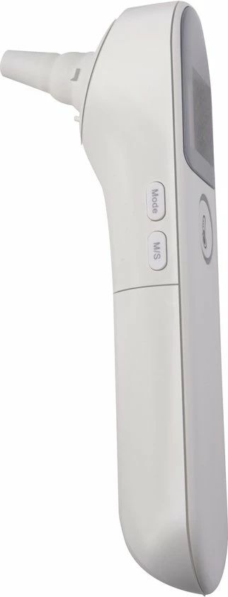 Temperatuur meten gaat heel gemakkelijk via infrarood. Richt de sensor van het apparaat gewoon op het te meten oppervlak. Naar wens gebruik je deze thermometer als oorthermometer in je gehoorgang of als voorhoofdthermometer. Schakelen tussen deze 2 standen doe je door de meetdop voor de voorhoofdtemperatuur te verwijderen of juist te plaatsen. De LCD-display toont met een tekentje van een oor of hoofd welke meetvorm je hanteert.