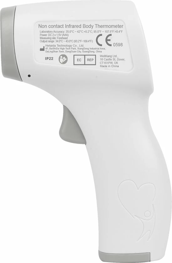 Met deze contactloze infrarood thermometer meet je nauwkeurig en snel de lichaamstemperatuur op het voorhoofd in enkele seconde. Ook de omgevingstempratuur en de temperatuur van objecten en vloeistoffen tot 100?C kunnen met de thermometer contactloos worden gemeten. Het toestel is uitgerust met een groot, goed leesbaar display dat ook van kleur verandert afhankelijk van de temperatuur. Bij een groen scherm is de temperatuur oke. Kleurt het display oranje dan duidt dat op een lichte verhoging. Bij een temperatuurverhoging vanaf 38.1 ?C wordt het display rood. Naast dit optisch heeft de thermometer ook een akoestisch alarm.