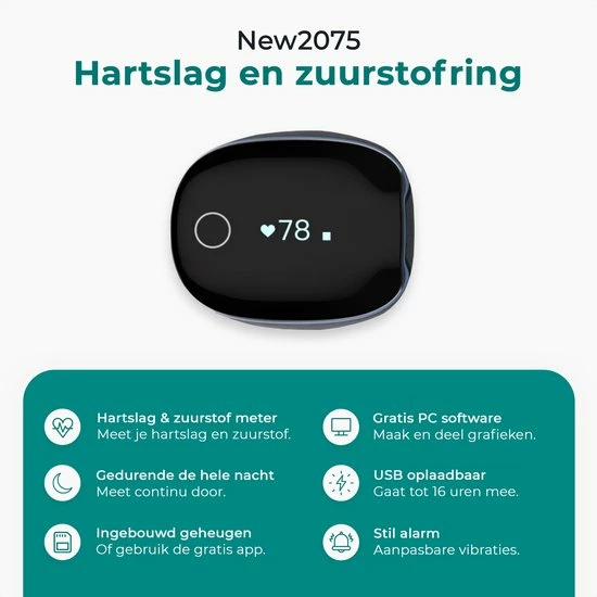 De zuurstofring is betrouwbaar,blijft goed om de vinger zitten en beschikt over een batterij die lang mee gaat. Heb het beste met jezelf voor en blijf bovenop jouw gezondheid zitten met de ring van New2075.
