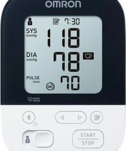 ?De OMRON M4 Intelli IT is een klinisch gevalideerde bloeddrukmeter waarmee je thuis eenvoudig je hypertensie kunt controleren en die de meetwaarden via Bluetooth automatisch naar je smartphone stuurt. Gemaakt door OMRON, Europa’s meest door cardiologen aanbevolen merk bloeddrukmeters voor thuis.