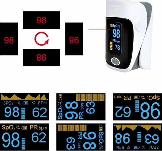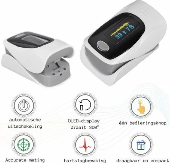 Deze Zuurstof Oximeter / Saturatiemeter is een hulpmiddel dat de hartfrequentie en het zuurstofgehalte in het bloed binnen enkele seconden kan meten via een makkelijke vingerclip. Dit product is erg handig voor na het sporten.