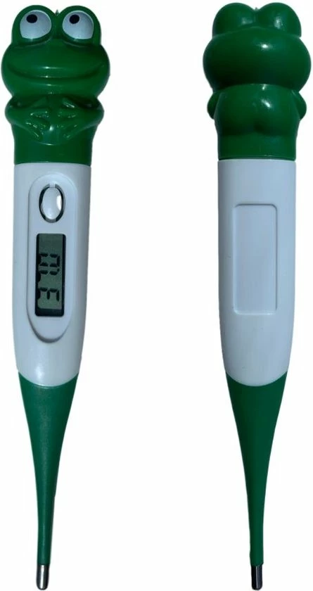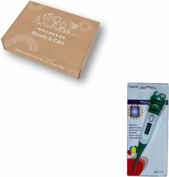 Het meten van temperatuur bij kinderen is nooit een pretje, maar kan wel leuker gemaakt worden! Deze Orange85 Thermometer Kind Flexibel Digitaal Kikker maakt het meten van de temperatuur een stuk aangenamer. Door de flexibele tip gaat het meten van de thermometer gemakkelijker. De grappige kikker maakt het voor het kind een stuk leuker. De temperatuur komt naar voren op de display met een nauwkeurigheid van 0,1?C. Daarnaast heeft deze thermometer een koortsalarm. Wanneer de temperatuur boven de 37,5 graden gemeten wordt, waarschuwt de thermometer u door middel van een aparte piep. Voor het meten van de temperatuur wordt aangeraden om de thermometer onder de oksel te plaatsen of voor rectaal gebruik. De meting duurt ongeveer 60 seconden. Met water kan de thermometer eenvoudig gereinigd worden. De thermometer gaat automatisch uit na gebruik.