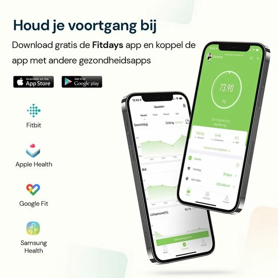 Jouw nieuwe weegschaal is gekoppeld aan de slimme Fitdays app zodat je al jouw resultaten waar dan ook bij de hand hebt. Hoe veel calorieën had jij ook alweer nodig en wat was die laatste meting? Door de Fitdays app te openen ben jij weer volledig op de hoogte.