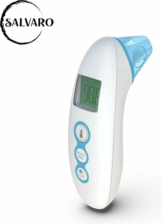 De Infraroodsensor geeft vervolgens de temperatuur weer van het gemeten oppervlak. Salvaro® Infrarood Thermometers geven dit aan met een precisie van 0.1-0.2 graad ten opzichte van het gemeten referentie punt. Mocht uw voorhoofd temperatuur oplopen, dan zal deze thermometer dat zonder enig probleem aangeven. Wij raden aan om de thermometer te gebruik op het voorhoofd op plekken waar veel bloedvaten zitten, bijvoorbeeld de slaap van het hoofd of net boven uw wenkbrauwen.Ieder meet punt heeft onder normale omstandigheden een net andere temperatuur. Zo kan er een verschil zijn tussen een rectale meting en voorhoofd meting.