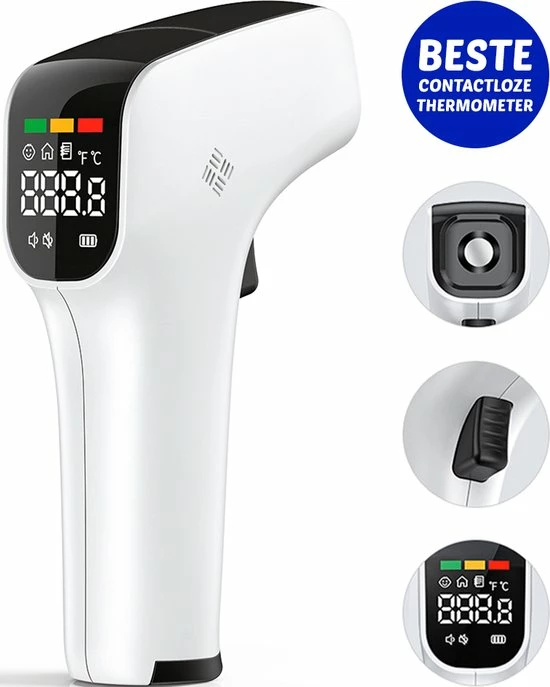 Voor een snelle, accurate en pijnloze meting van de lichaamstemperatuur van uzelf of uw familie is deze thermometer alles wat u nodig heeft. Hou de thermometer 2 centimeter van uw voorhoofd af en het digitale scherm laat u na 1 seconde zien wat uw temperatuur is, en of u koorts heeft of niet