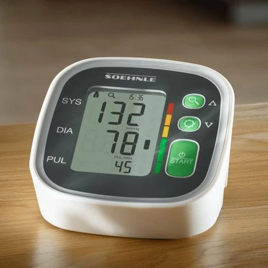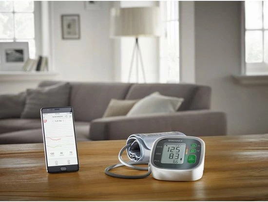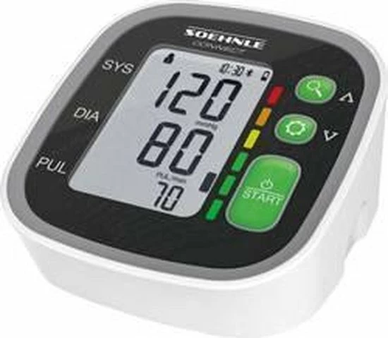Lange termijn monitoring via de app-verbinding: na elke meting verzendt de Soehnle bovenarm bloeddrukmeter Systo Monitor Connect 300 jouw resultaten rechtstreeks naar de Soehnle Connect-app via Bluetooth?. Dagelijkse, wekelijkse, maandelijkse en jaarlijkse overzichten maken de voortgang van jouw training in ??n oogopslag zichtbaar, altijd en overal. De ge?ntegreerde bewegingssensor in de Systo Monitors Connect 300 waarschuwt je voor eventuele armbewegingen die kunnen leiden tot onjuiste metingen, wat betekent dat je altijd kunt rekenen op nauwkeurige meetresultaten. Naast de volautomatische metingen van de systolische en diastolische bloeddruk en de puls, heeft het apparaat ook een aritmiedetectie functie die een mogelijke abnormale of onregelmatige hartslag kan aangeven. Opdat je de ontwikkeling van jouw gevolgde resultaten over een langere periode kunt volgen, biedt de Systo Monitor Connect 300 elk 60 opslagplaatsen voor twee gebruikers en bepaalt ook een gemiddelde van de laatste drie metingen. In de aanvullende gastmodus kunnen andere mensen het apparaat zonder problemen gebruiken en zonder jouw metingen te negeren. Om jouw bloeddruk te beoordelen op een manier die eenvoudig en duidelijk is, worden alle meetresultaten geclassificeerd met een verkeerslichtkleurencode, volgens het classificatiesysteem van de WHO (World Health Organization).