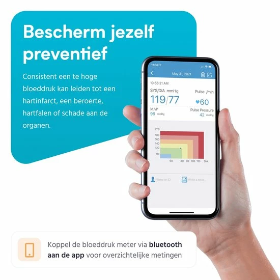 ✔ Koppel de bloeddruk meter via bluetooth aan de app voor overzichtelijke metingen