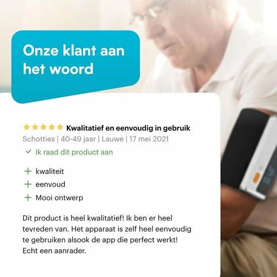 Plaats de bloeddrukmonitor op de gewenste plek, zet hem aan, en laat de bijgeleverde app voor op de smartdevice alle data monitoren en in een grafiek plaatsen. Hierdoor heb je binnen 3 stappen direct inzicht in jouw gezondheid.